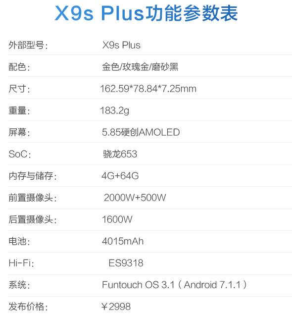 X9s Plus參數(shù)表